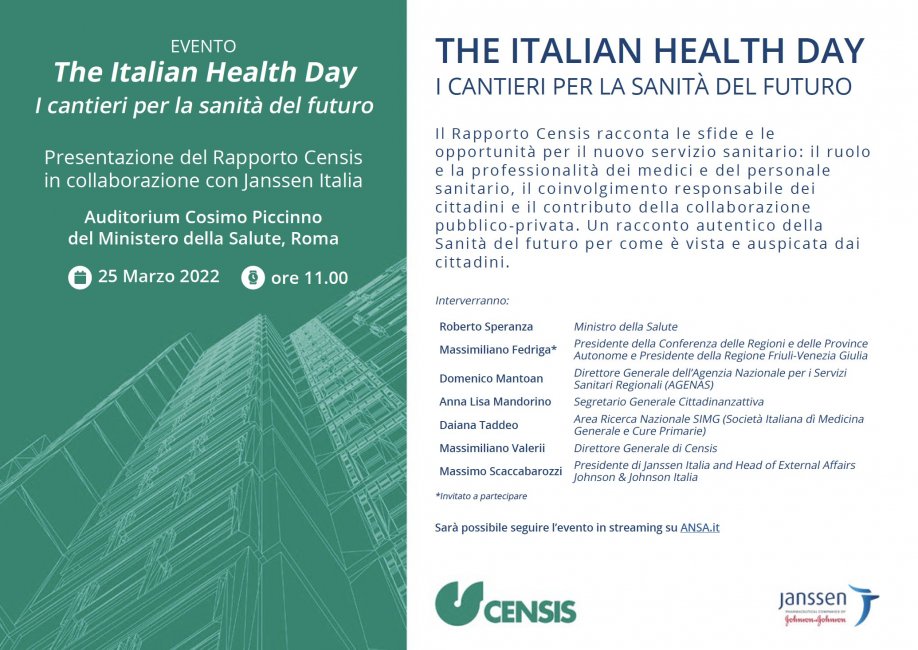 Venerdì 25 marzo 2022 presso l'Auditorium Piccinno del Ministero della Salute vi è stato l'evento The Italian Health day "I cantieri per la sanità del futuro".